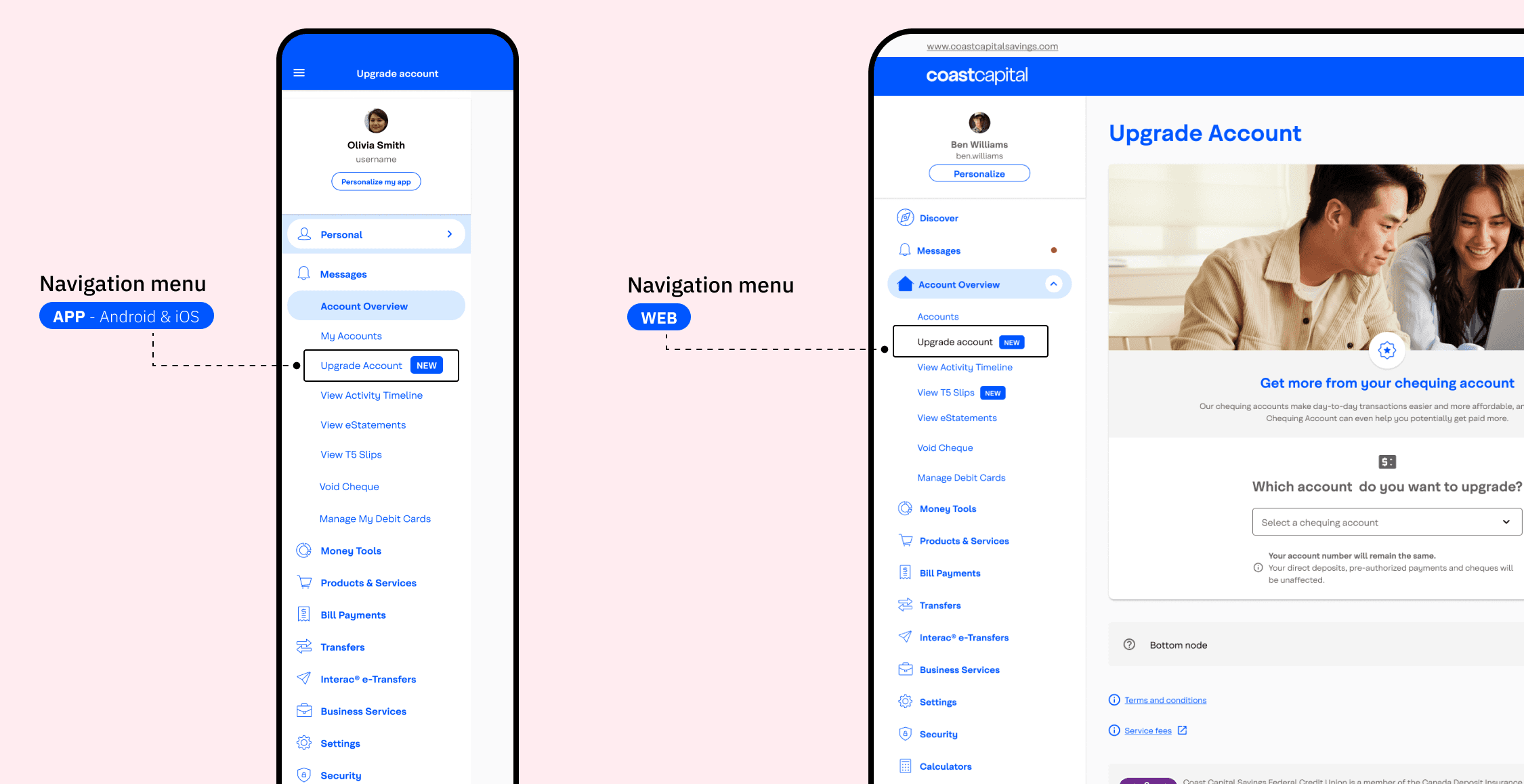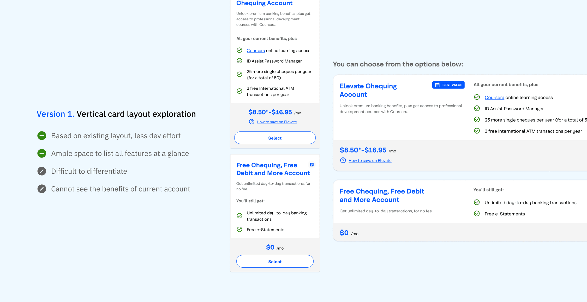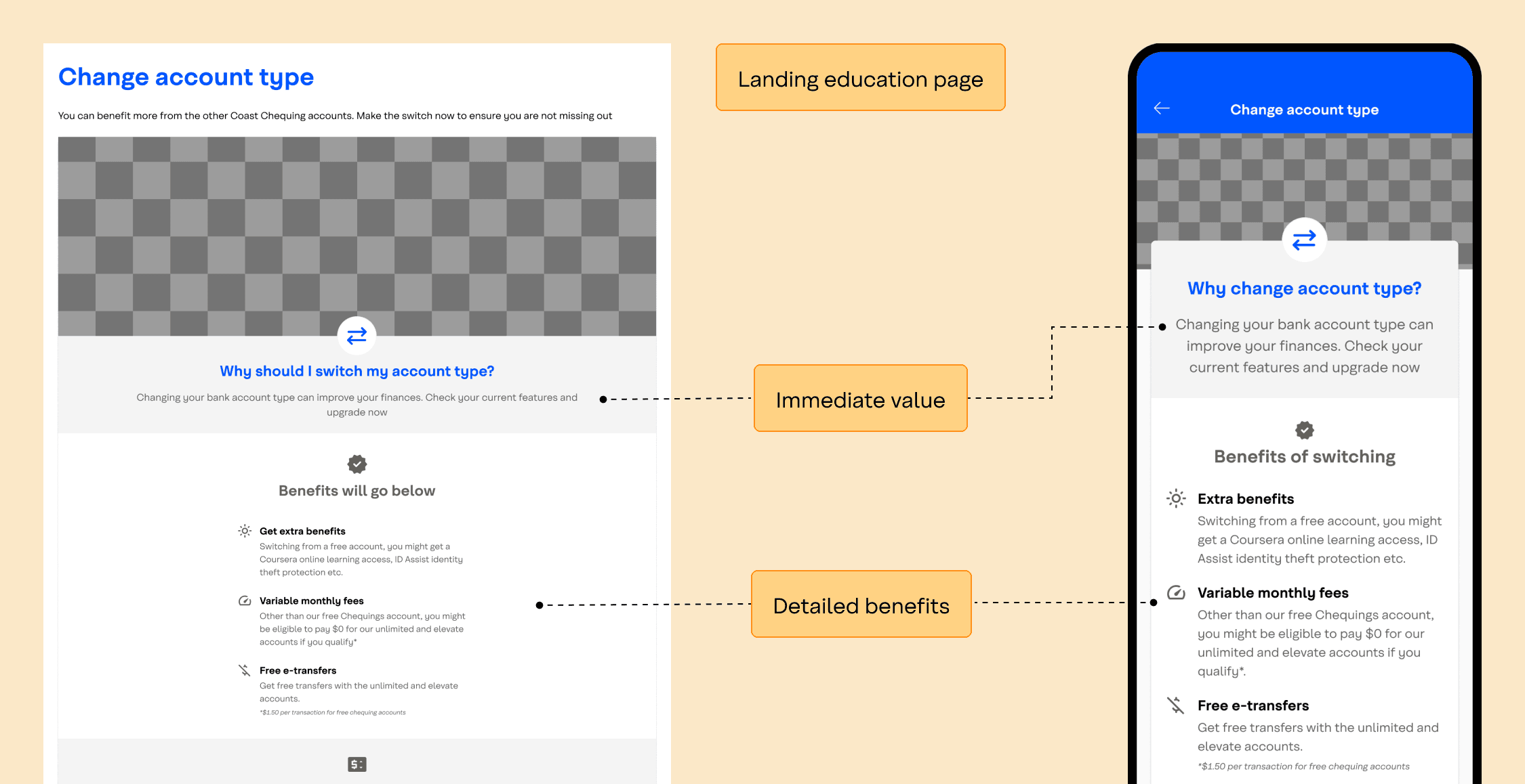Designed a digital banking experience that enables users to upgrade their account type seamlessly online.