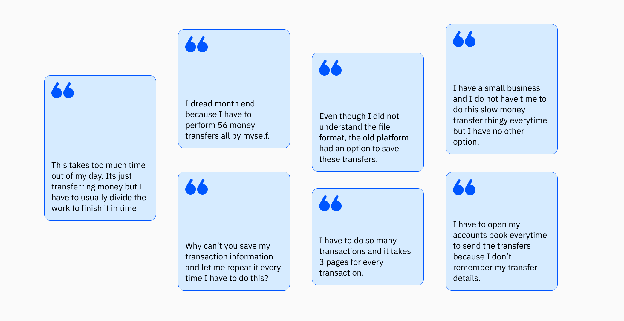 This feature release addressed key pain points - repetitive process for money transfers and user frustration with referring to an offline resource for transfer details.